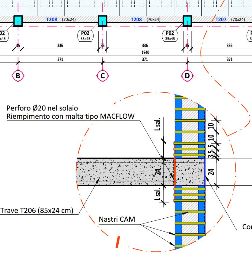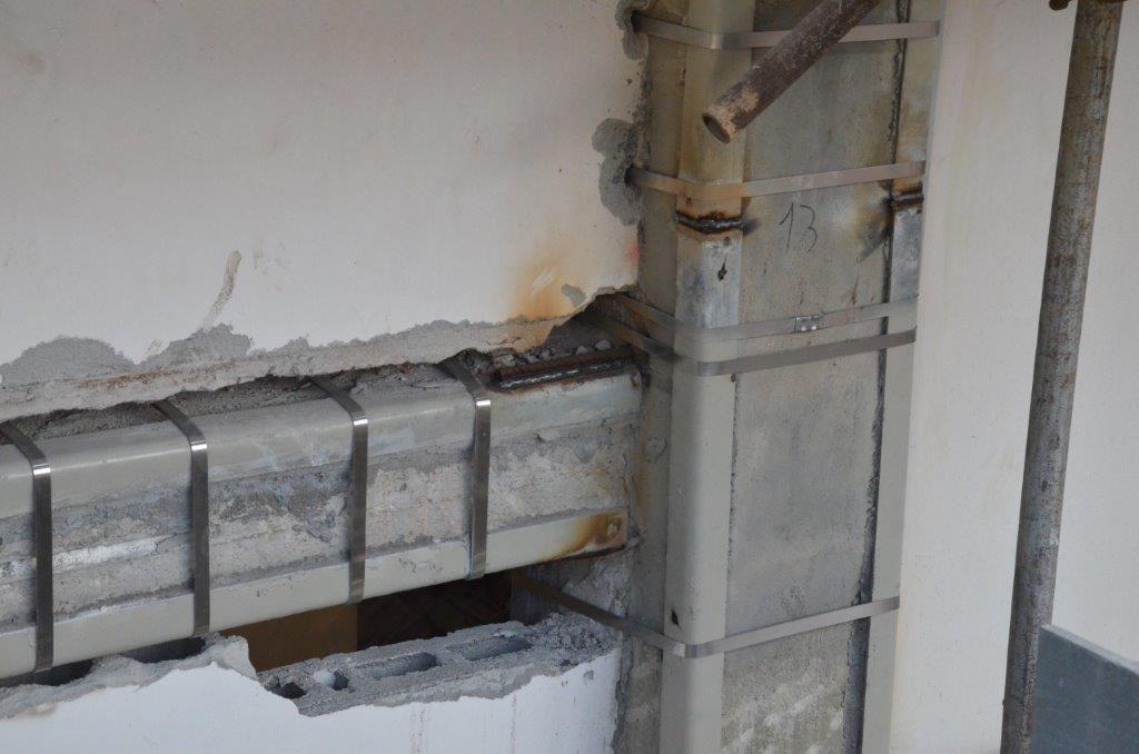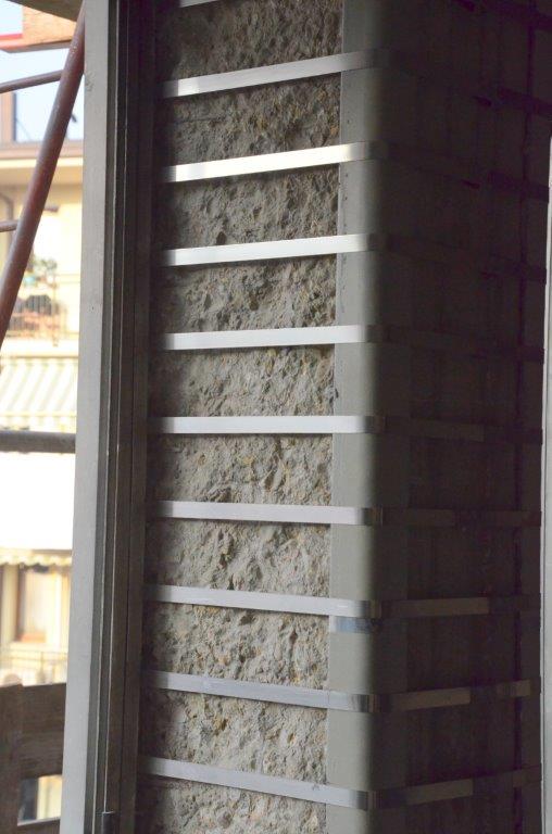 L'intervento ha consentito l'incremento delle prestazioni statiche e sismiche, mediante l'applicazione dell'innovativo sistema di consolidamento C.A.M., basato sulla realizzazione di cerchiature metalliche attive (nastri in acciaio inox ad alta resistenza pretensionati)