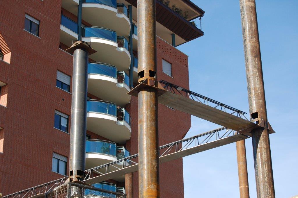 - Pilastri in tubolari di acciaio riempiti in cls (sistema SMQ)